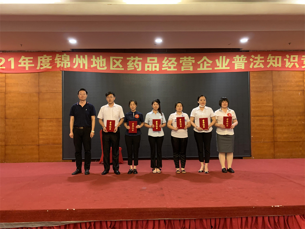 2021年度錦州地區(qū)藥品經(jīng)營企業(yè)普法知識(shí)競賽榮獲團(tuán)體二等獎(jiǎng),及個(gè)人一,二,三等獎(jiǎng)